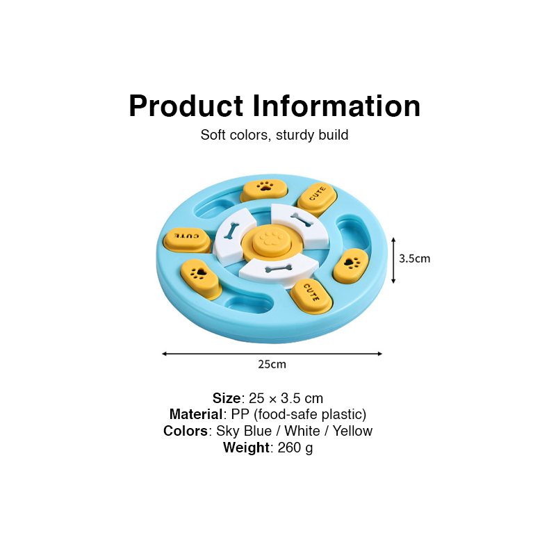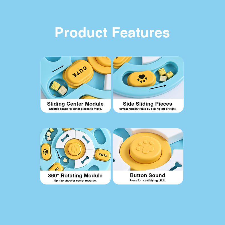 • Slow-Feeding Puzzle: Designed to engage your pet’s natural instincts, this toy encourages sniffing and pawing to move sliders and find food. It helps slow down eating, supports digestion, and provides valuable mental stimulation.